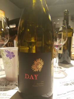Styles vary from the claret style, which is lighter in color and body and lower alcohol, to inky, 16+% alcohol monsters. Predictably, I gravitate to the former. I encountered today’s wine, the 2015 Day from Sonoma County at the California Grapevine. I tasted it blind with four other 2015 zinfandels, as is the practice at Grapevine tastings. We taste the flights blind and then rank our top three and vote to determine which wines win. This one was my clear #1, as it was the most balanced and elegant of the group. I was not at all surprised and completely delighted to find out that this is Ehren Jordan’s new zin project. He made his name making Turley’s zins and went on to found his own label, Failla. This is one of my favorite California producers of elegant, beautiful Chardonnay and Pinot Noir.